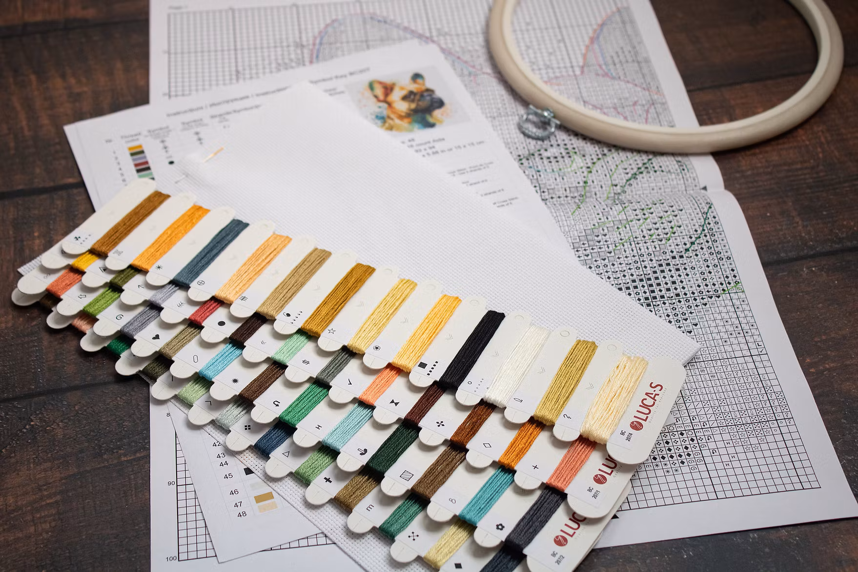 I broderikitet ingår stort tydligt mönster, 16 count aida Zweigart, mouline Luca-S 48 färger, en nål, sybåge/flexiram 205 mm.