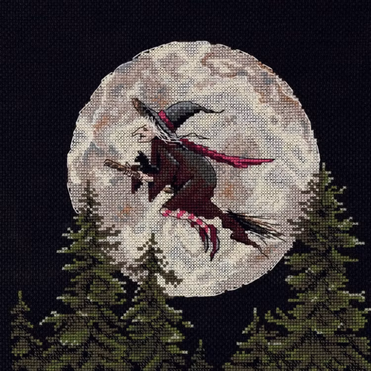 Broderas med mouline Gamma i räknade korsstygn- och efterstygn på svart aida väv 6,2 rutor/cm. Motivmått 20 x 20 cm