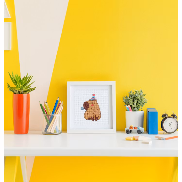 I broderikitet ingår stort tydligt mönster, 14 count aida Gamma, mouline Gamma, en nål.
