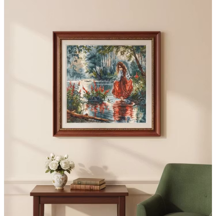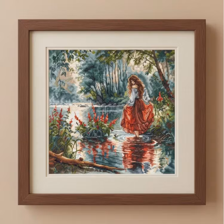 Broderas med mouline i räknade korsstygn- och efterstygn på vit aida väv 6,3 rutor/cm. Motivmått 32 x 32 cm