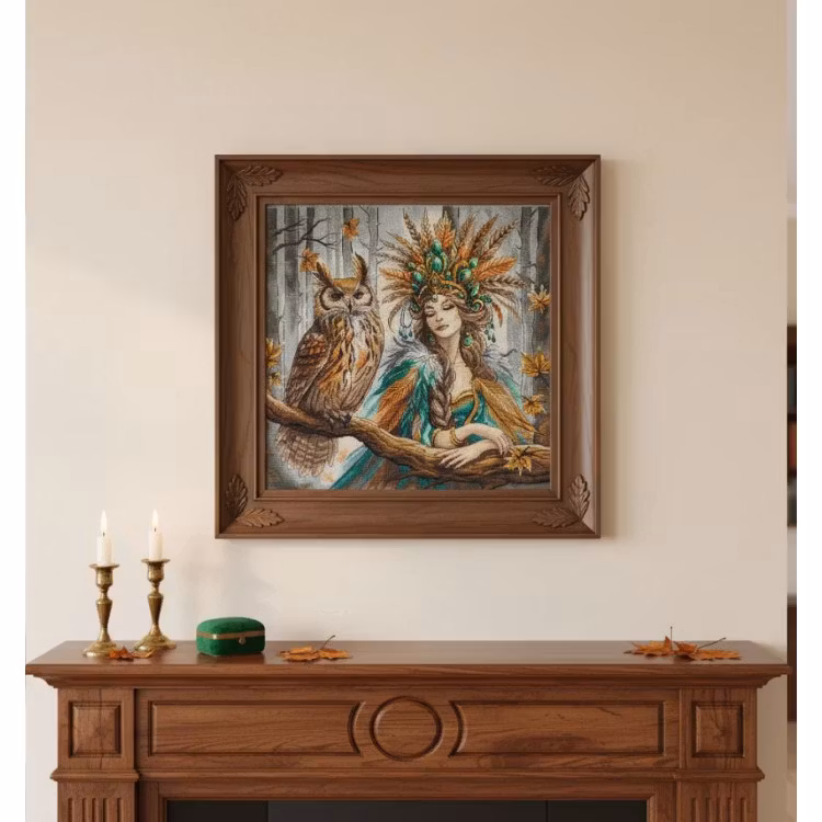 Broderas med mouline i räknade korsstygn- och efterstygn på vit aida väv 6,3 rutor/cm. Motivmått 32 x 32 cm