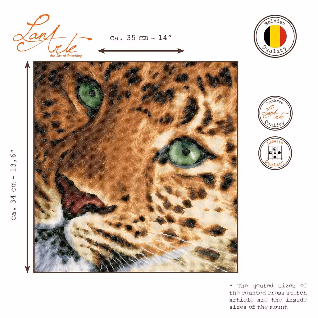 I broderikitet ingår stort tydligt mönster, 14 count aida, mouline DMC, en nål.