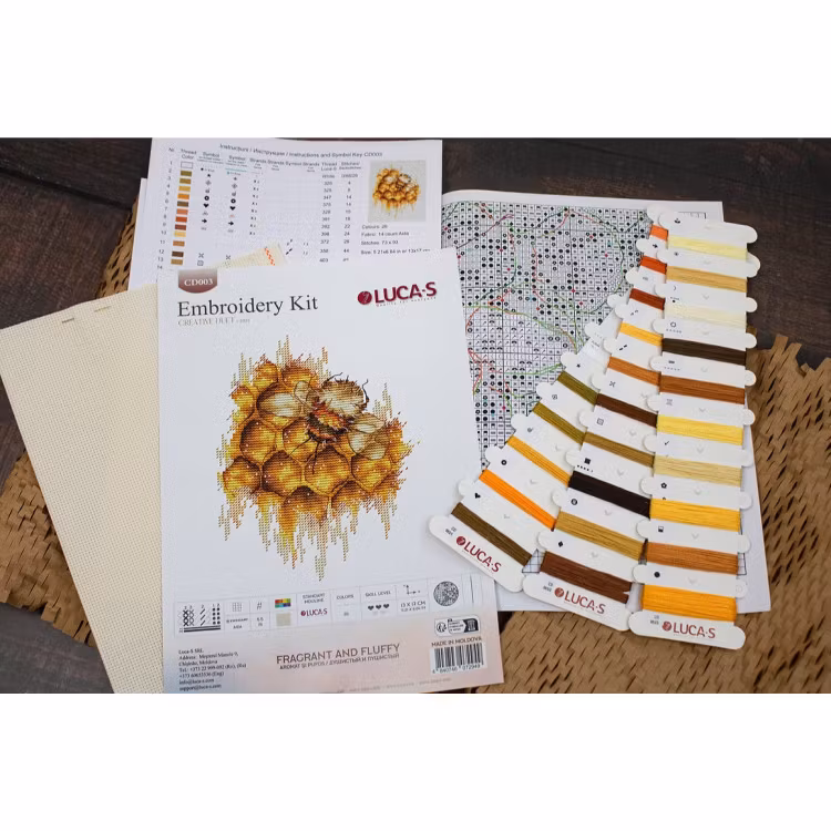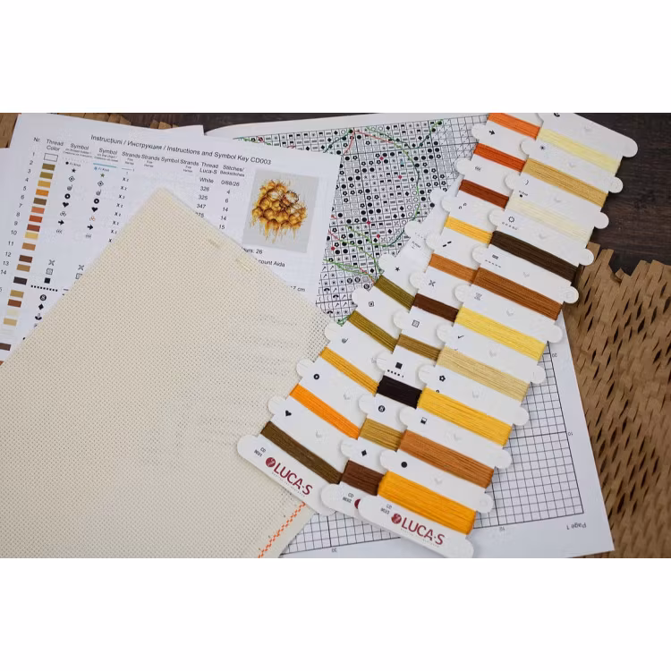 I broderikitet ingår stort tydligt mönster, 14 count aida Zweigart, mouline Luca-S 26 färger, en nål.