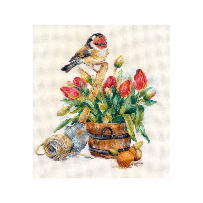 I broderikitet ingår mönster, mouline Gamma 33 färger, aidaväv Gamma 14 count, en nål.