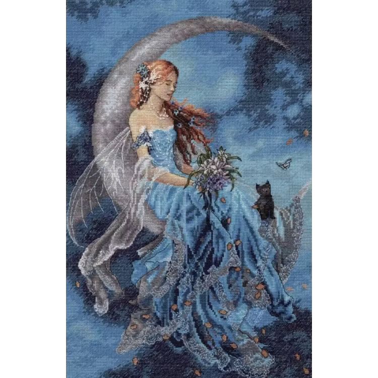 I broderikitet ingår mönster, mouline, aidaväv 16 count, en nål.
