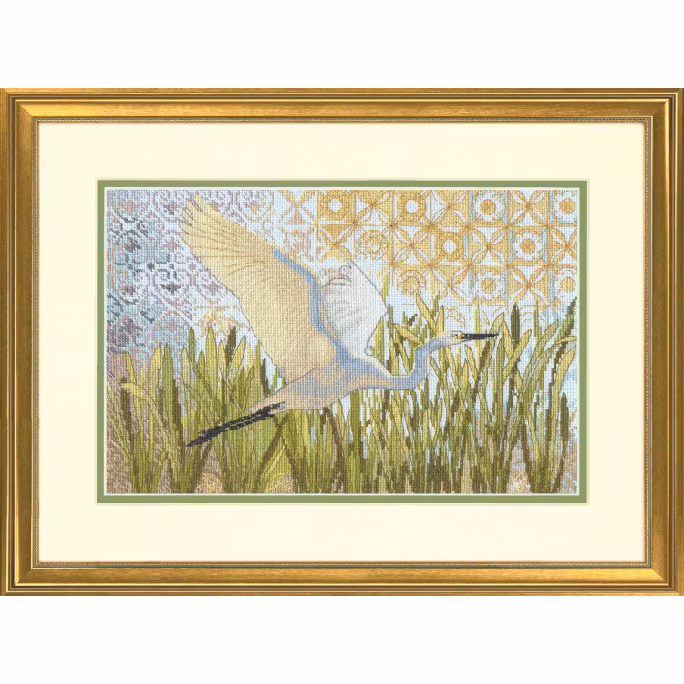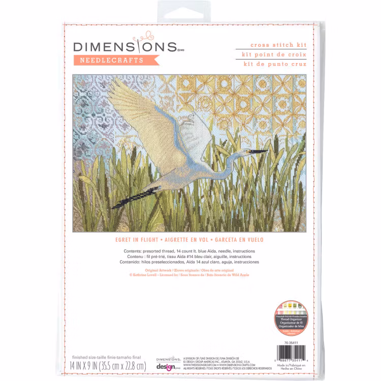 I broderikitet ingår mönster, mouline, aidaväv 14 count, en nål.