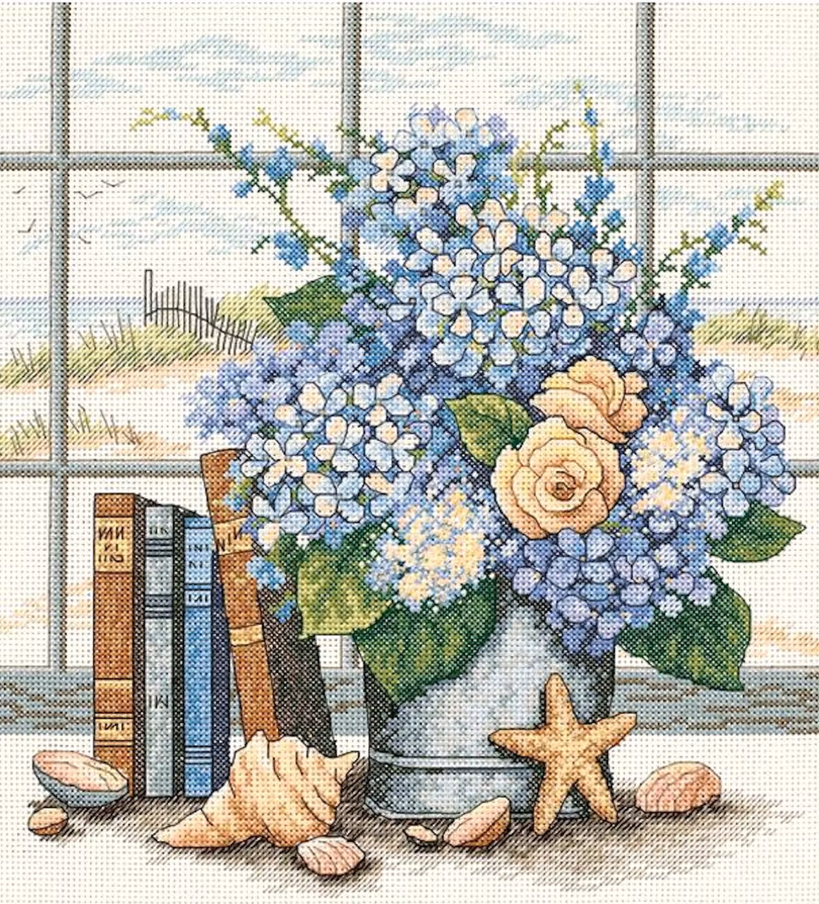 Denna fantastiska design är perfekt för alla som gillar hortensiablommor, snäckskal och stranden