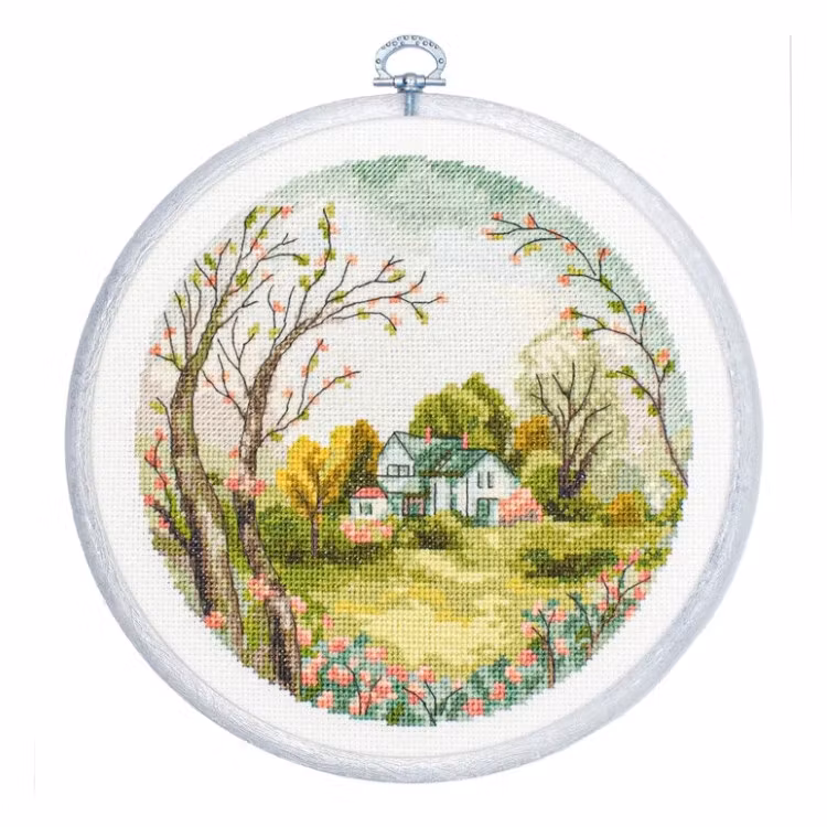 I broderikitet ingår stort tydligt mönster, 16 count aida Zweigart, mouline Luca-S 32 färger, en nål, sybåge/flexiram diameter 205 mm.