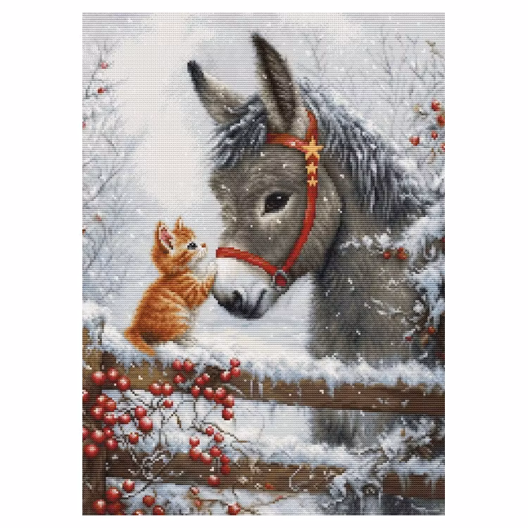I broderikitet ingår stort tydligt mönster, 16 count aida Zweigart, mouline Luca-S 57 färger, en nål.