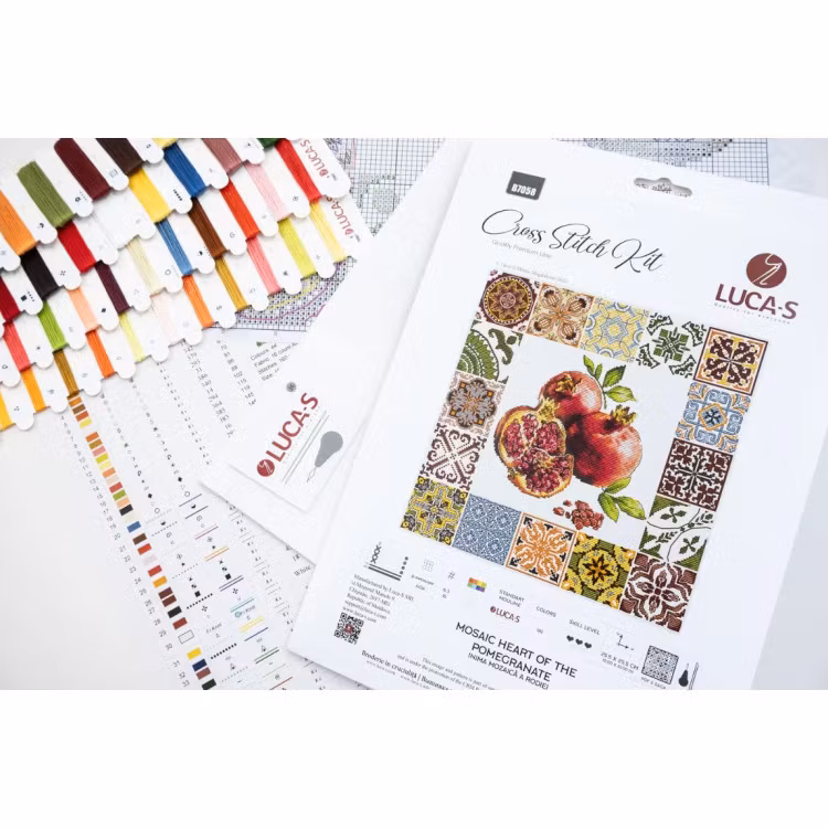 I broderikitet ingår stort tydligt mönster, 16 count aida Zweigart, mouline Luca-S 44 färger, en nål.