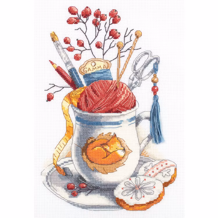 I broderikitet ingår stort tydligt mönster, 14 count aida Gamma, mouline Gamma, en nål.